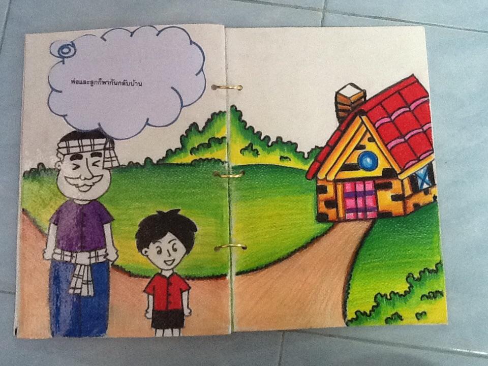 ลูกทองดี : พ่อก็ดูสิครับมีเศษเหล็กเต็มไปหมดเลย ถ้าเราเอาไปขายเราต้องได้เงินเยอลแน่นอนเลยครับ เรามาช่วยกันเก็บดีกว่าครับพ่อ