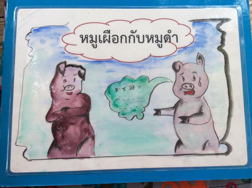 หมูเผือกตอบเจ้ากระรอกแล้วหันไปทางหมูดำ