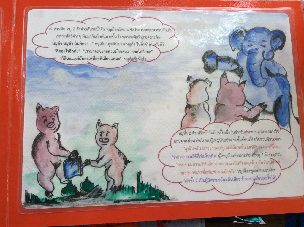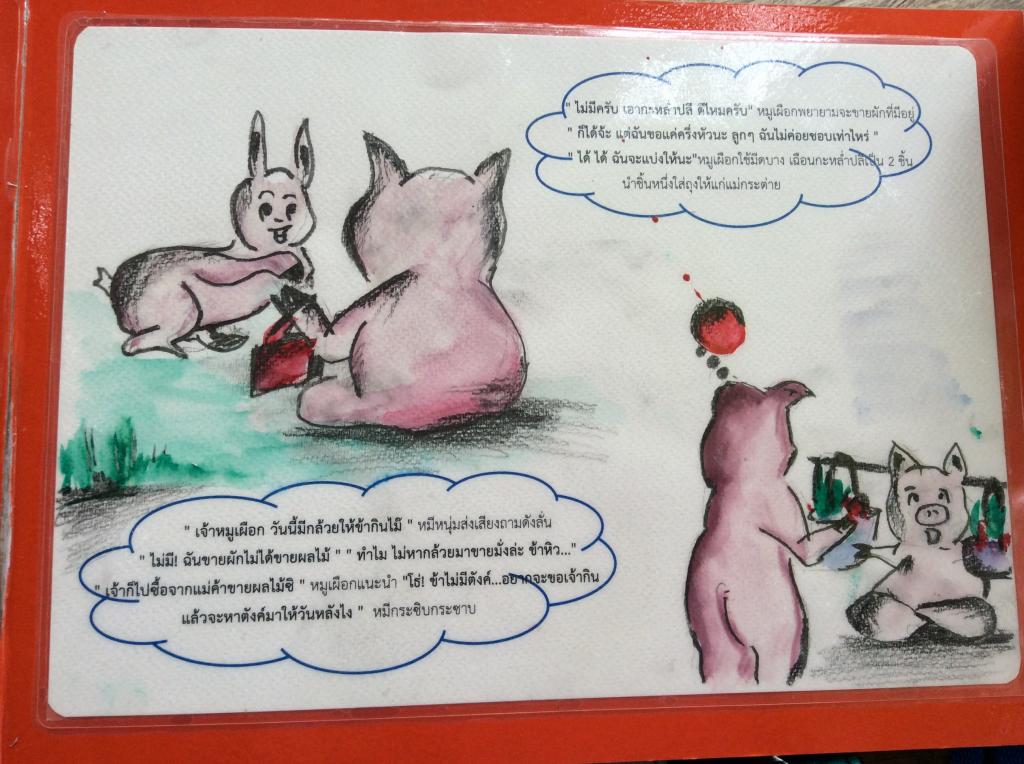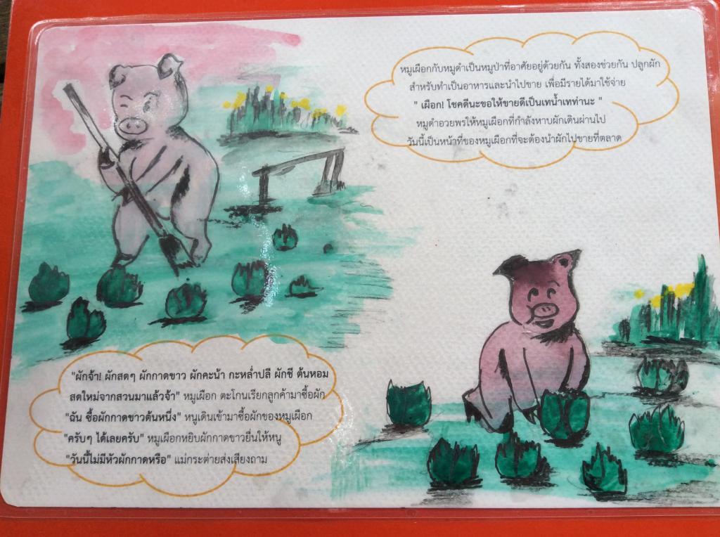 วันนี้เป็นหน้าที่ของหมูเผือกที่จะต้องนำผักไปขายที่ตลาด.