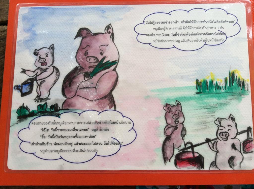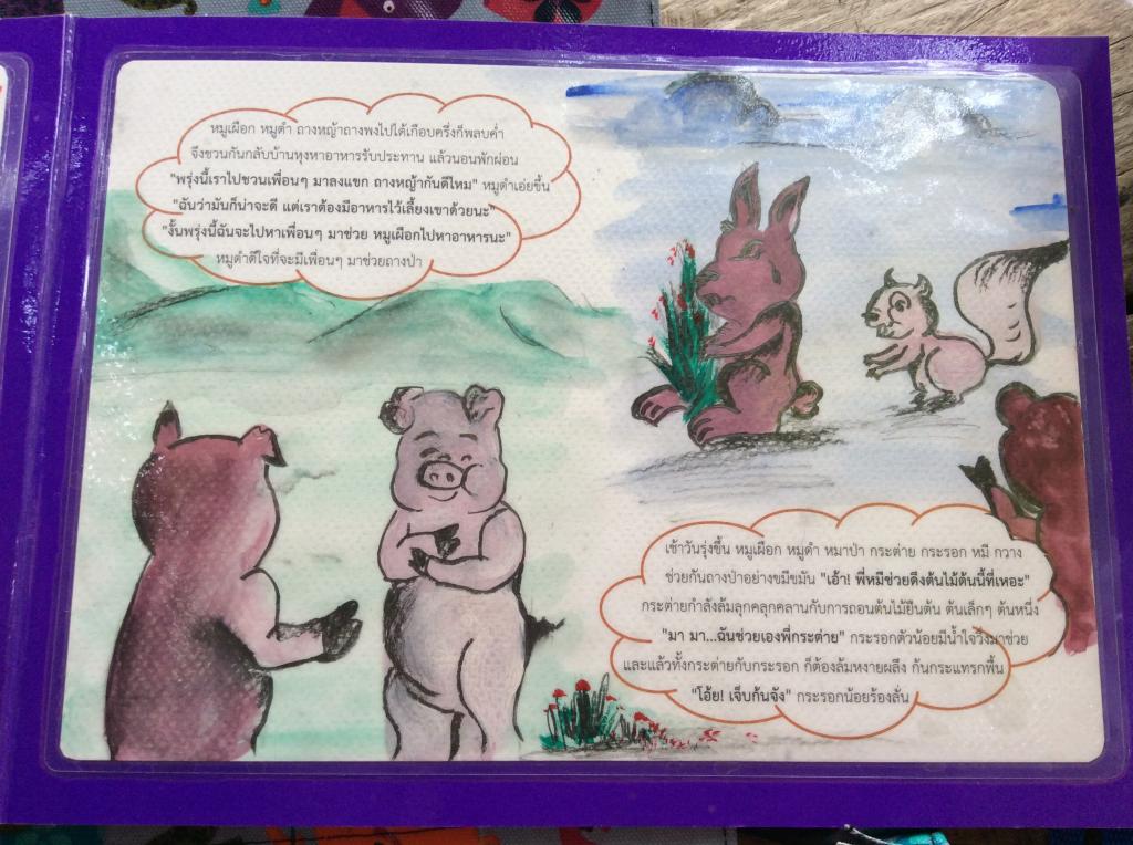 " งั้นพรุ่งนี้ฉันจะไปหาเพื่อนๆ มาช่วย หมูเผือกไปหาอาหารนะ " หมูดำดีใจที่จะมีเพื่อนๆ มาช่วยถางป่า.