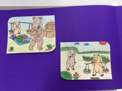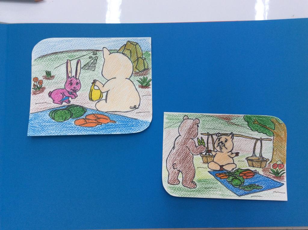 " ฉันไม่รู้จะช่วยเจ้าอย่างไร...เอ้าฉันให้ผักกาดต้นหนึ่งไม่คิดตังค์หรอก " หมูเผือกรู้สึกสงสารหมี