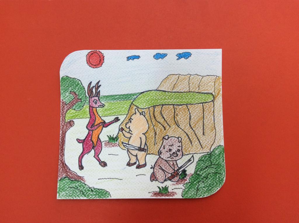 เช้าวันรุ่งขึ้น หมูเผือก หมูดำ หมาป่า กรอต่าย กระรอก หมี กวาง ช่วยกันถางป่าอย่างขมีขมัน