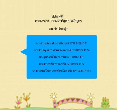 งานกลุ่ม สัปดาห์ที่ 1 ความหมายและความสำคัญของหลักสูตร