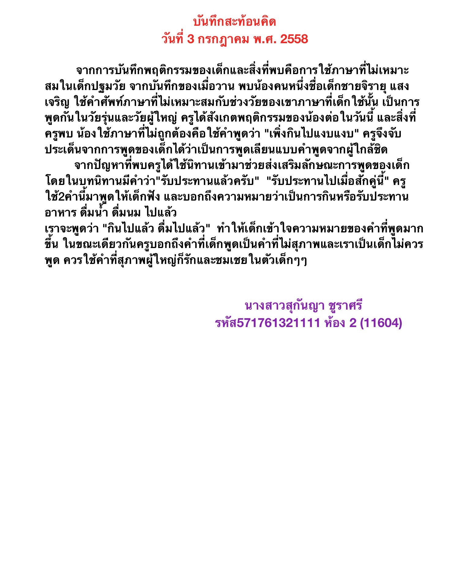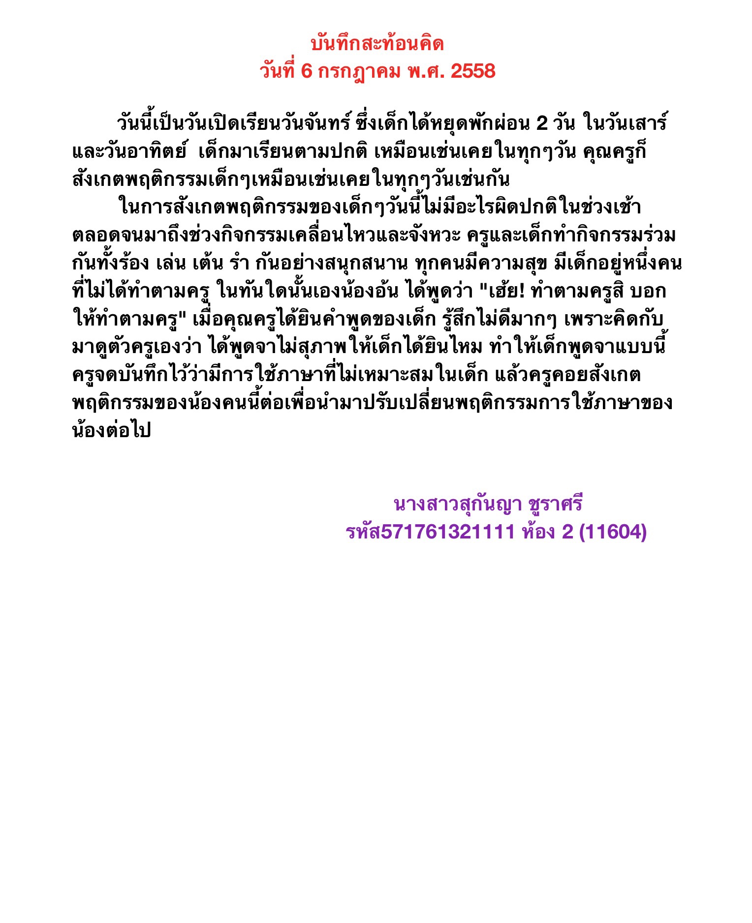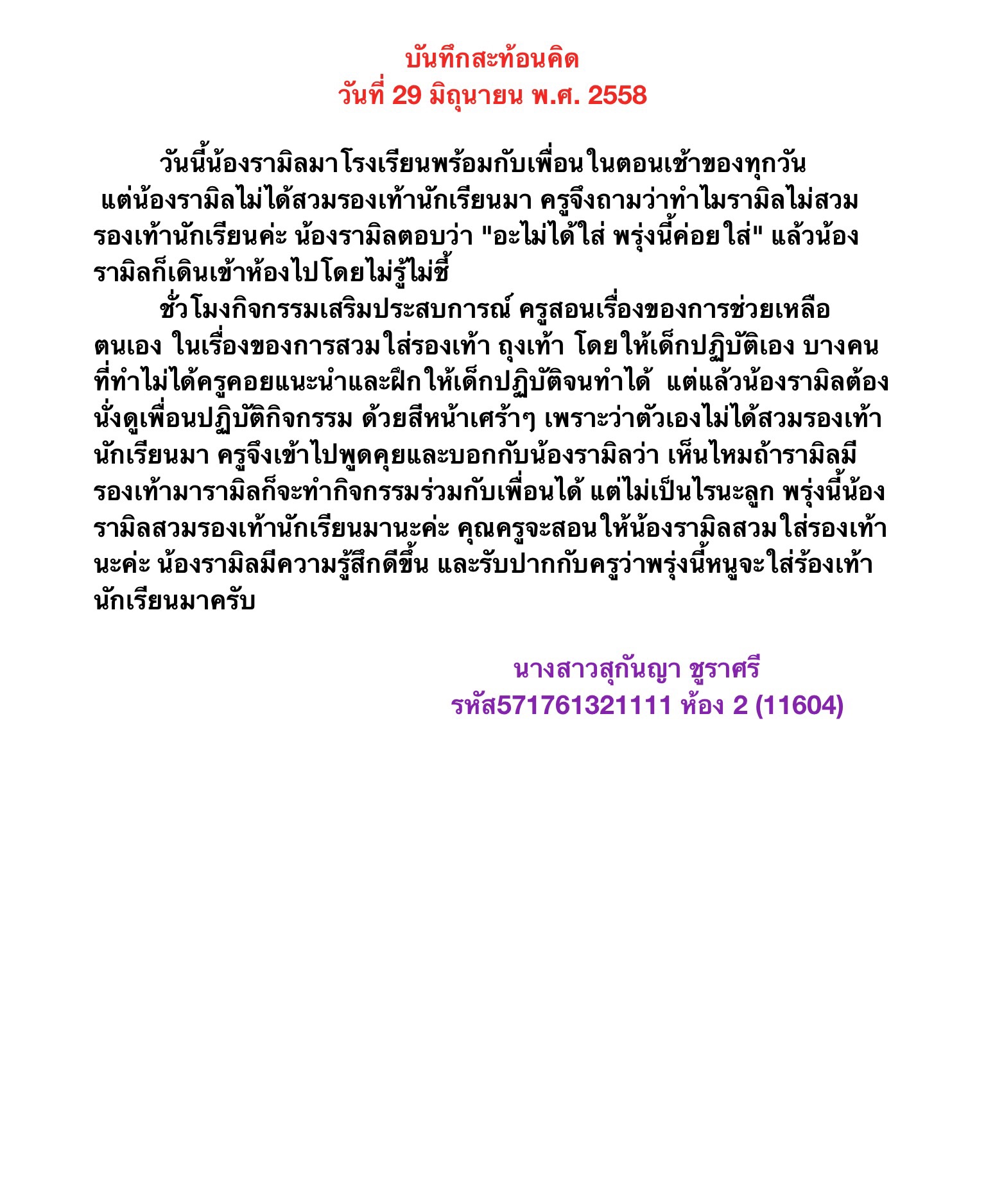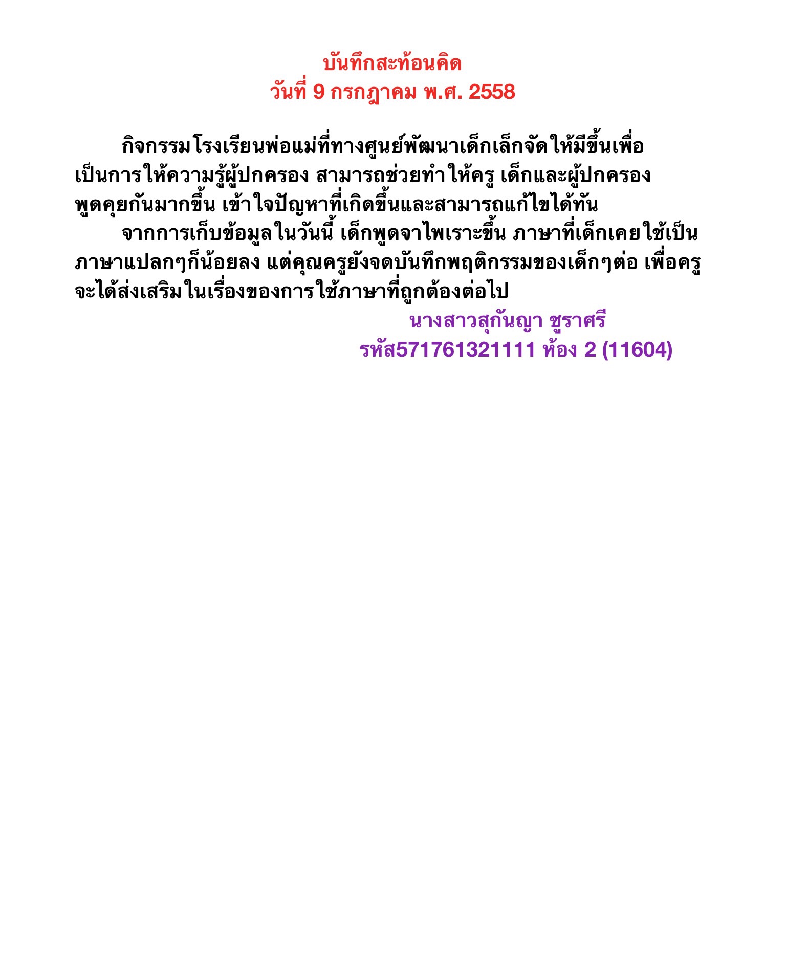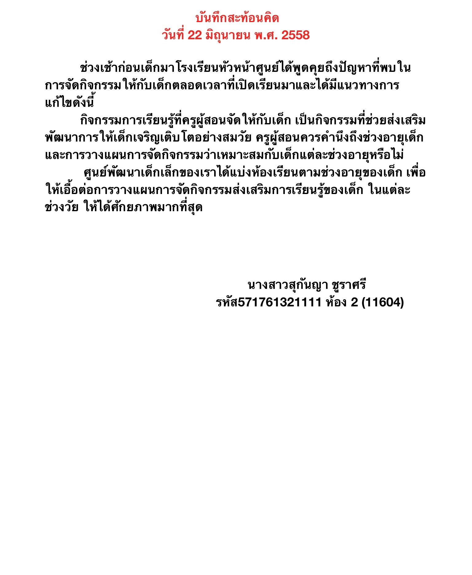 1. บันทึกสะท้อนคิด