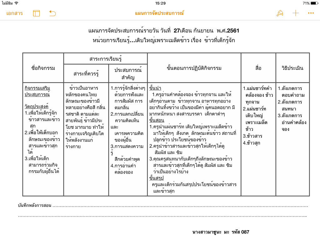 บันทึกรายงานการฝึกปฏิบัติการสอน 1