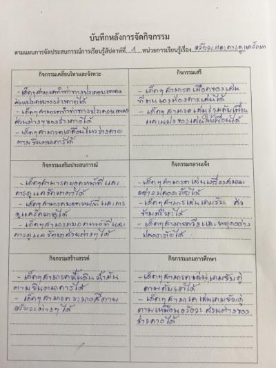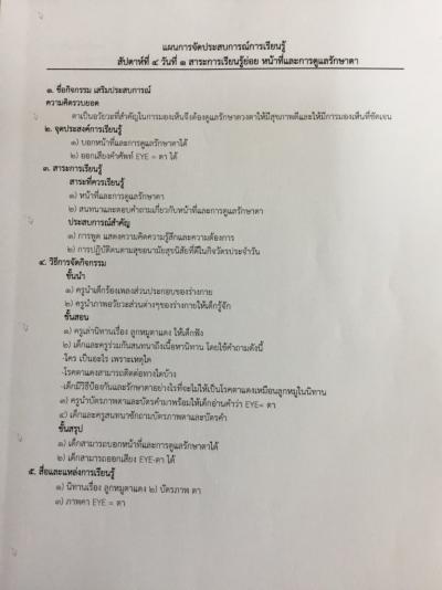 แผนการจัดประสบการณ์ หน่วยอวัยวะและการดูแลรักษา