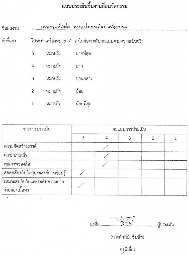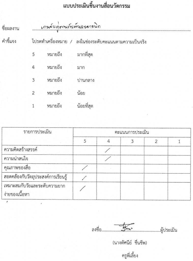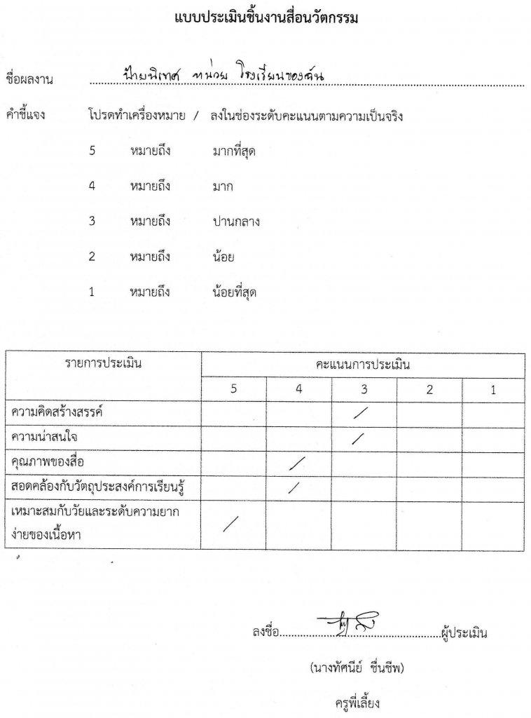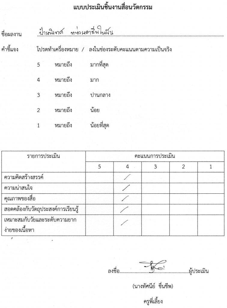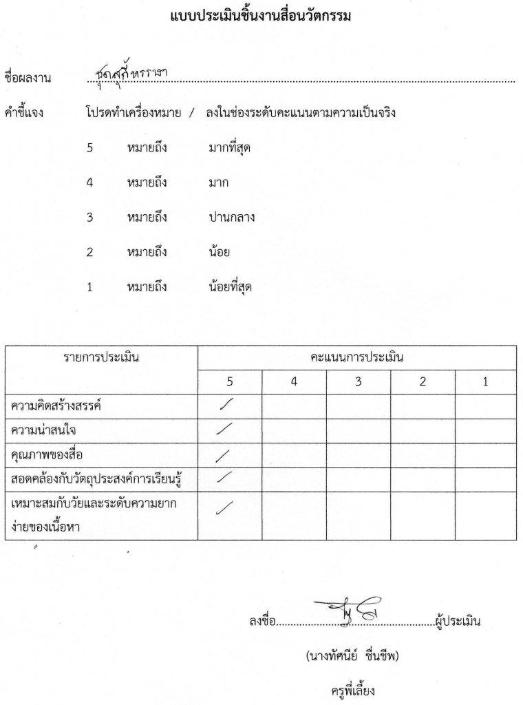 แบบประเมินชิ้นงานสื่อนวัตกรรม