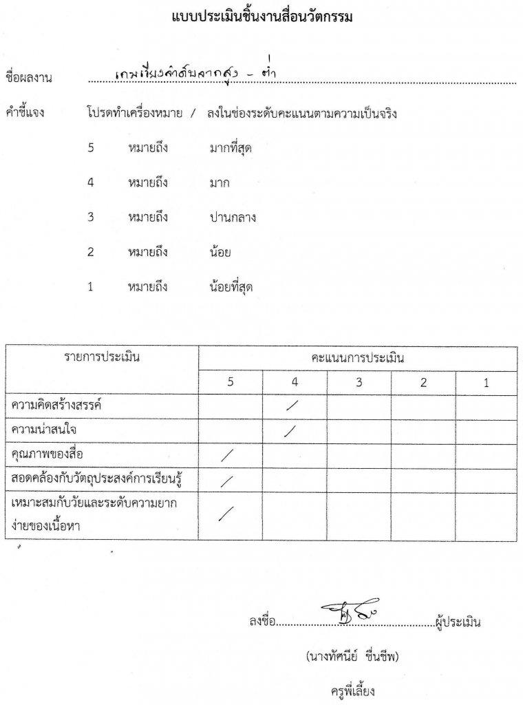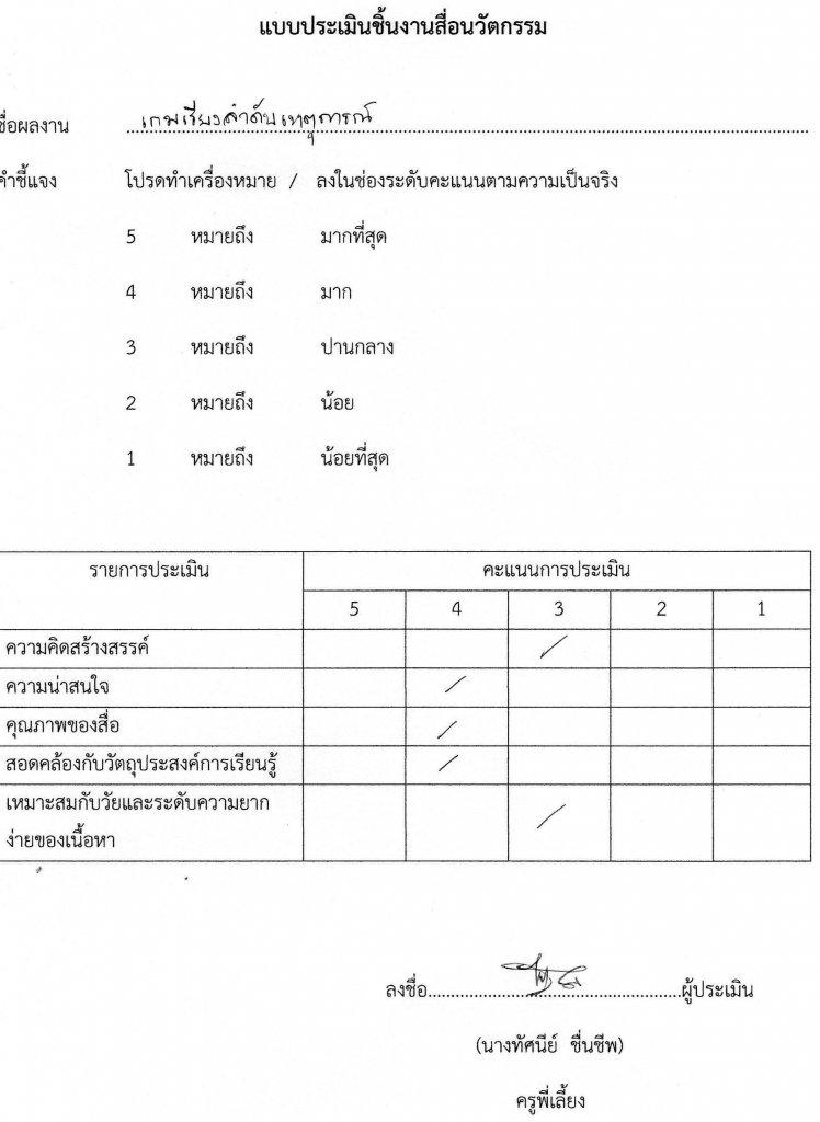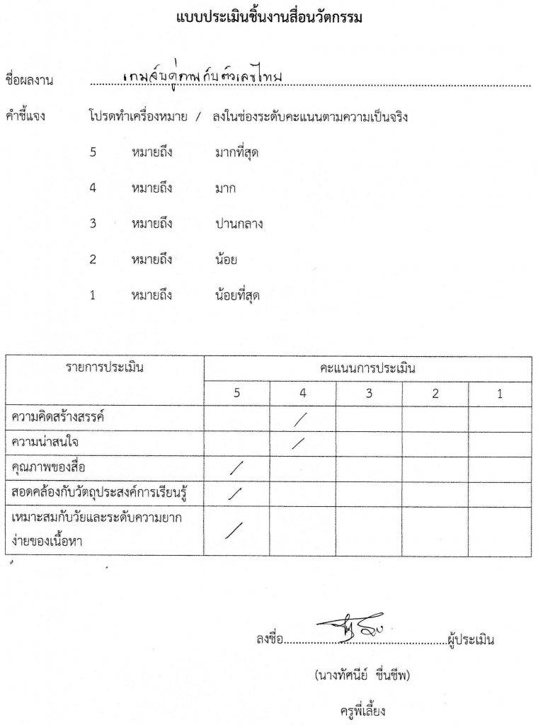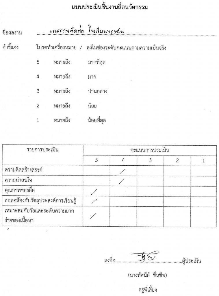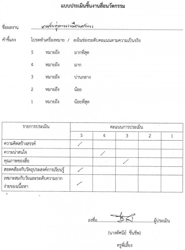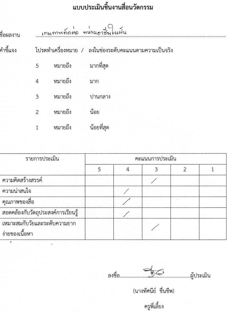 แบบประเมินชิ้นงานสื่อนวัตกรรม