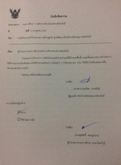 การปฏิบัติการสอนในศูนย์พัฒนาเด็กเล็กโรงเรียนอนุบาลอินทร์บุรี ครั้งที่ 1 หน่วยประสาทสัมผัส