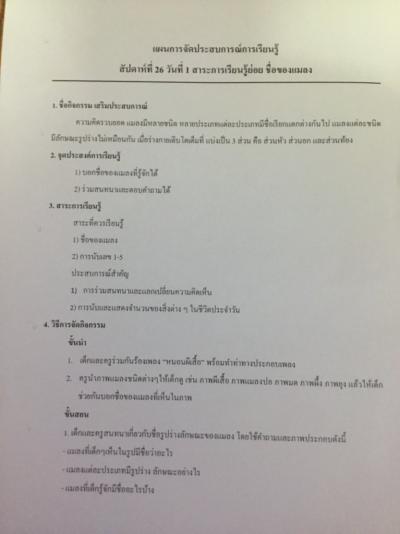 แผนการจัดประสบการณ์ หน่วยโลกของแมลง
