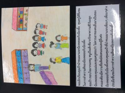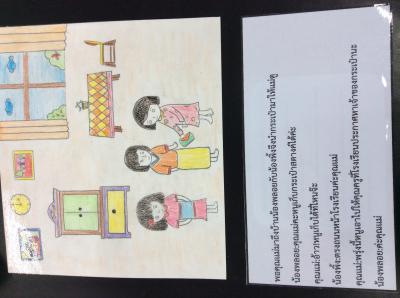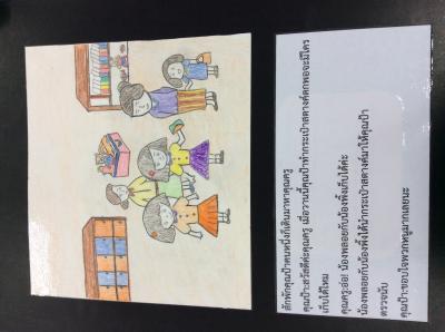 คุณครู:ดีมากเลยคะคนเก่งของคุณครูเดี๋ยวครูจะติดประกาศไว้เผื่อคุณป้าคนนั้นมานะ