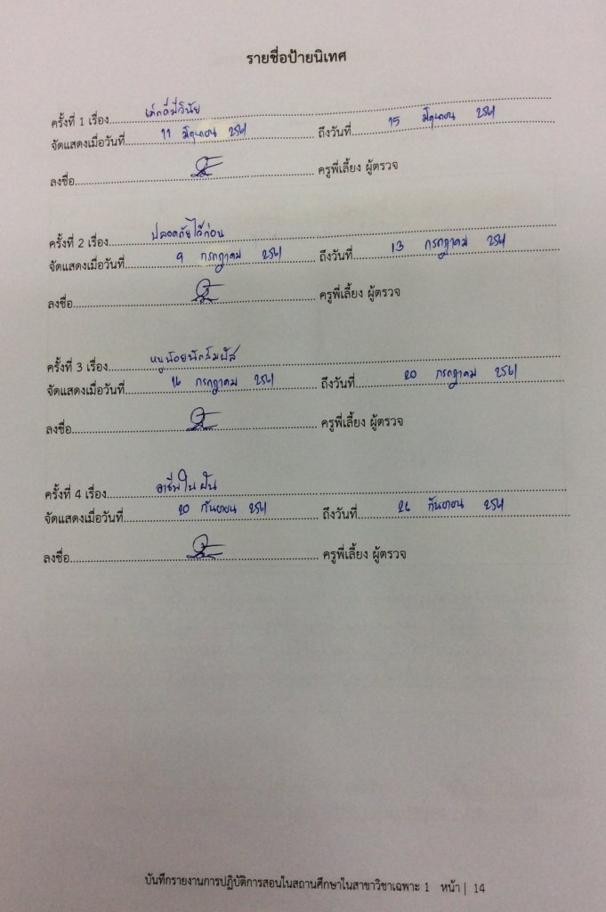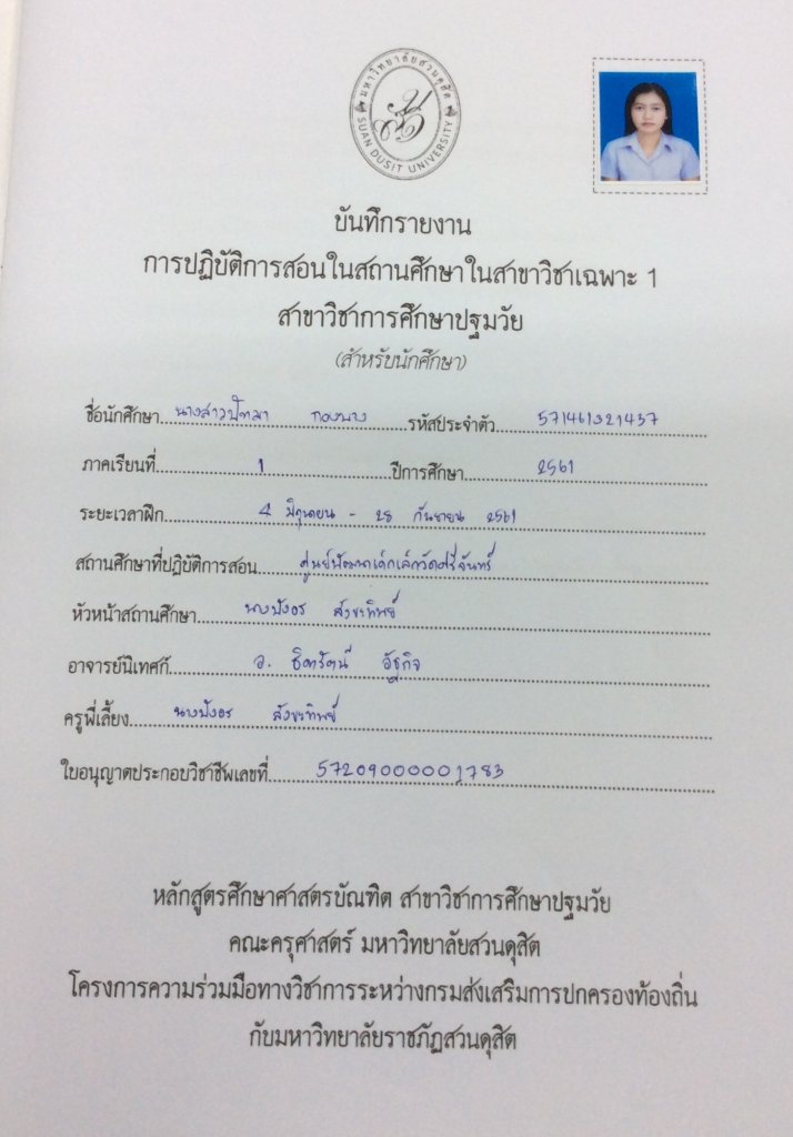 แฟ้มสะสมงานของ น.ส.ปัทมา กองบาง รหัส 437 ฝึกปฏิบัติการสอนในสถานศึกษาระหว่างวันที่ 4 มิถุนายน - 28 กันยายน 2561