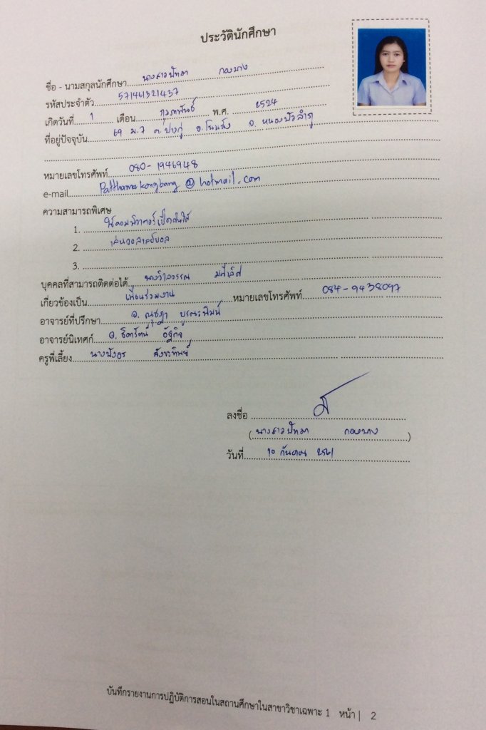บันทึกรายงานการปฏิบัติการสอนในสถานศึกษา