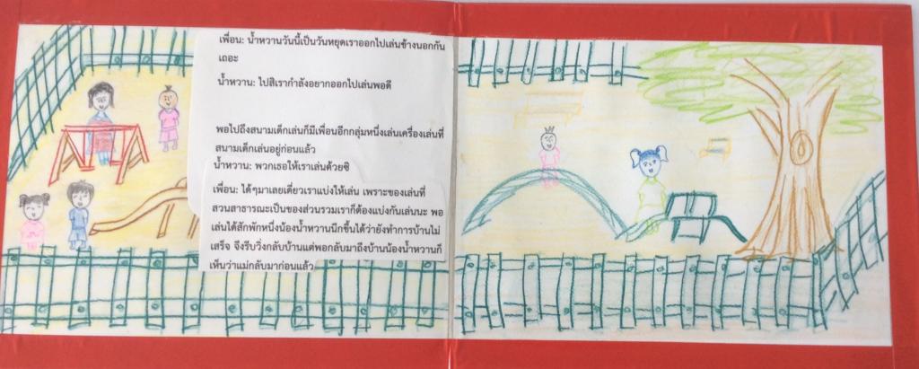 พอไปถึงสนามเด็กเล่นก็มีเพื่อนอีกกลุ่มหนึ่งเล่นเครื่องเล่นสนามอยู่ก่อนแล้ว