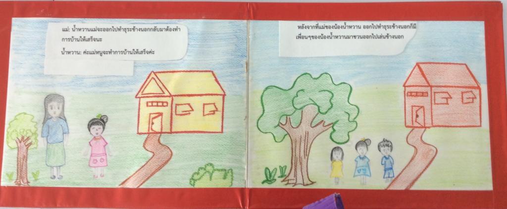 พอเล่นได้สักพักหนึ่งน้องนำ้หวานนึกขึ้นได้ว่ายังทำการบ้านไม่เสร็จ จึงรีบวิ่งกลับบ้านแต่พอกลับมาถึงบ้านน้องนำ้หวานก็เห็นว่าแม่กลับมาก่อนแล้ว