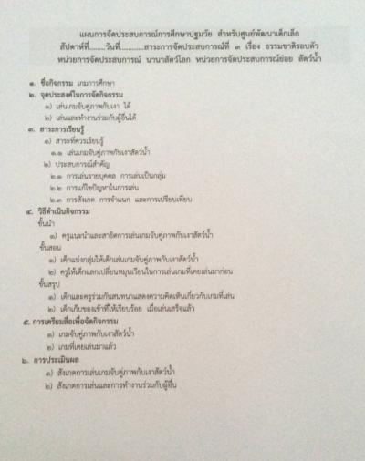 แผนการจัดประสบการณ์ หน่วยนานาสัตว์โลก