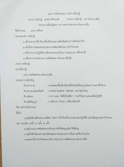 แผนการจัดประสบการณ์ หน่วยกลางวันกลางคืน