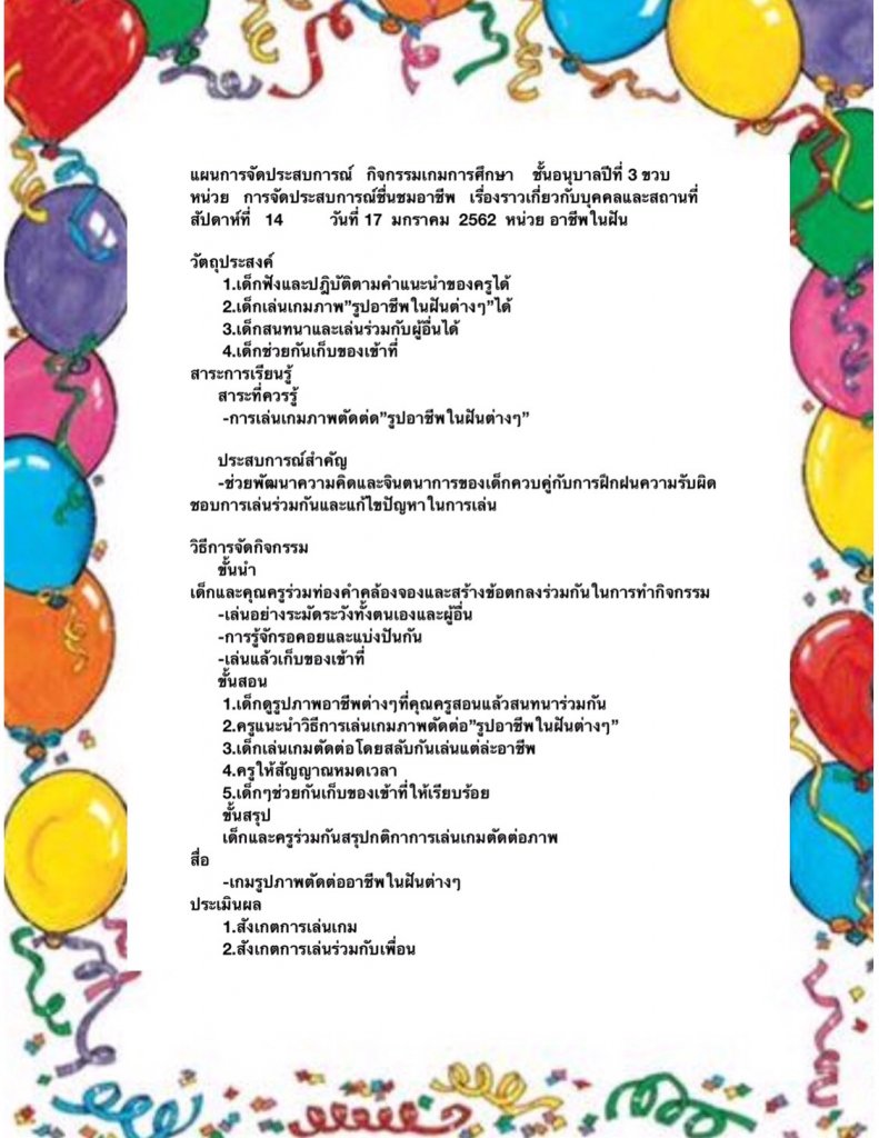 แผนการจัดประสบการณ์ หน่วยอาชีพในฝัน