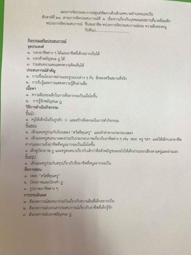 แผนการจัดประสบการณ์ หน่วยชื่นชมอาชีพ