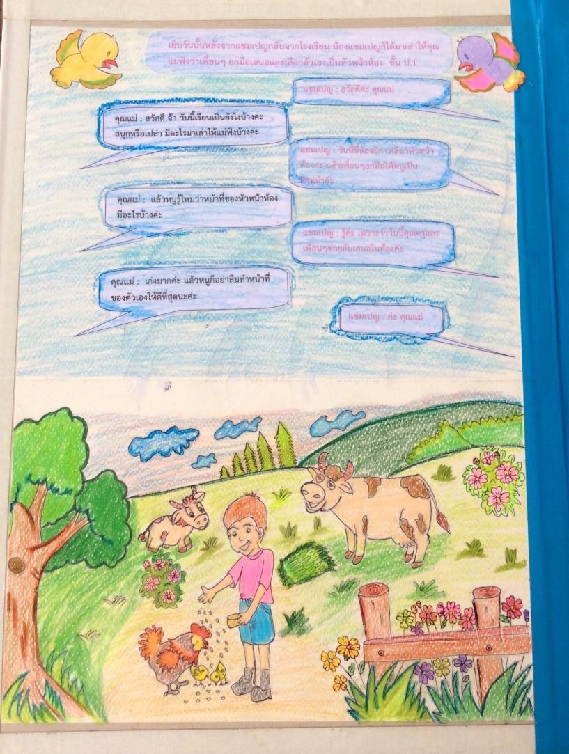 แม่ : ถูกต้องค่ะ เก่งมากเลย แล้วหนูก็อย่าลืมปฏัติหน้าที่ของตัวเองให้ดีที่สุดด้วยนะค่ะ