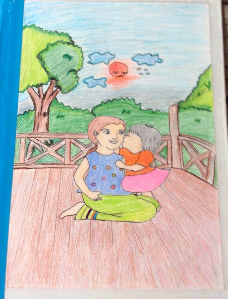 2. ความรู้ที่มีต่อการสร้างนิทาน : รู้สึกประทับใจในนิทานเรื่องนี้เพราะเป็นนิทานเรื่องแรกที่ได้แต่งและจัดทำขึ้นเอง ได้ออกแบบวางโครงเรื่อง วาดภาพ ระบายสี เข้าเล่มเองทุกอย่างโดยใช้ความคิดและจินตนาการของตนเองอย่างเต็มความสามารถ