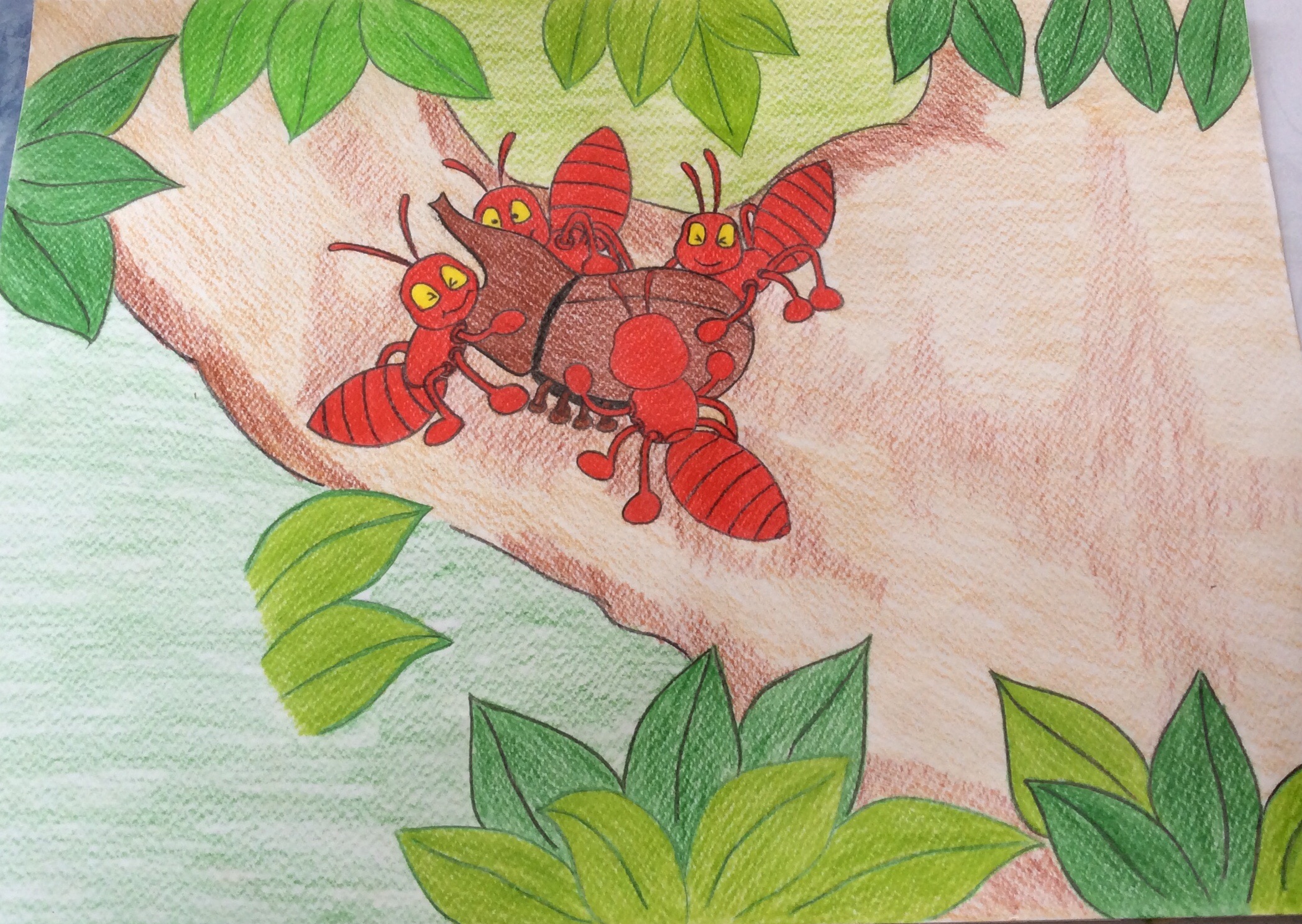 เหล่ามดน้อยถึงแม้แต่ละตัวจะตัวเล็กนิดเดียว แต่พวกมันก็มีความสามัคคี ขยัน และอดทน จนสามารถนำอาหารชิ้นใหญ่กลับไปเก็บไว้ที่บ้านของพวกมันได้สำเร็จ