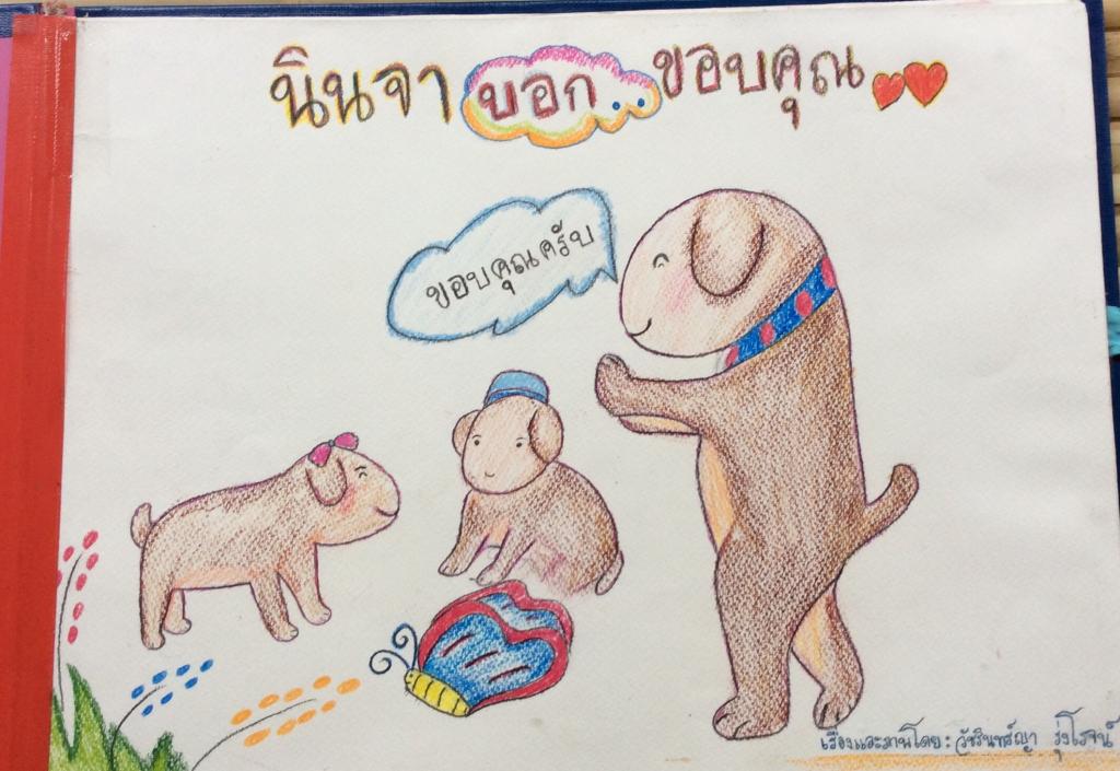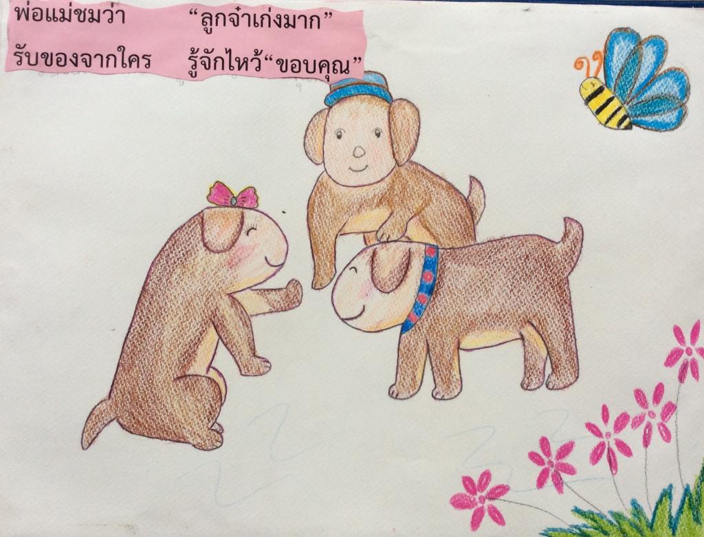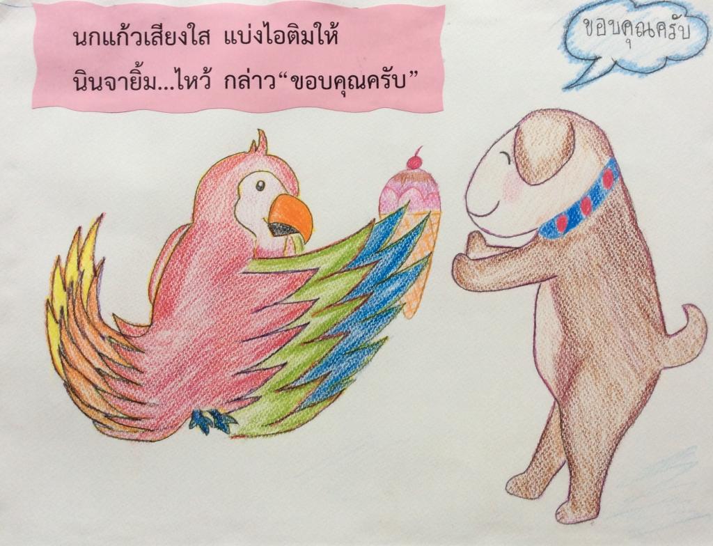 - แต่งนิทานเรื่อง นินจาบอกขอบคุณ ที่สอดคล้องกับคุณธรรมจริยธรรม ค่านิยม 12 ประการ ข้อที่ 5 รักษาวัฒนธรรมประเพณีไทยอันงดงาม