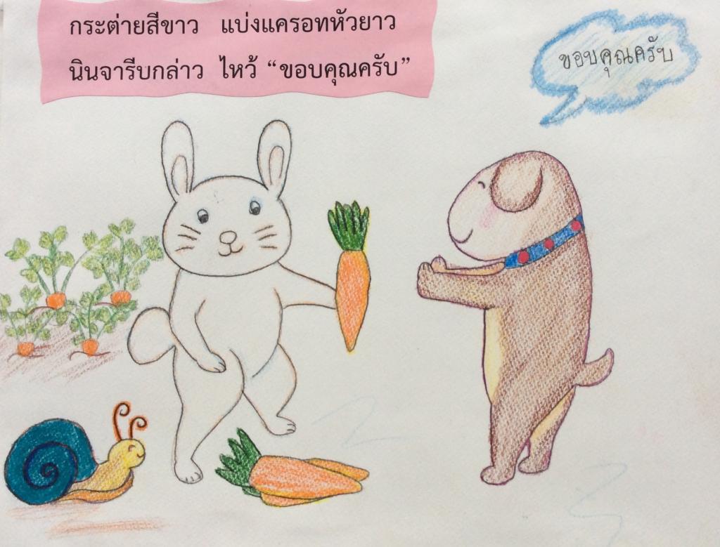 กระต่ายสีขาว แบ่งแคทรอทหัวยาว นินจารีบกล่าว ไหว้ "ขอบคุณครับ"