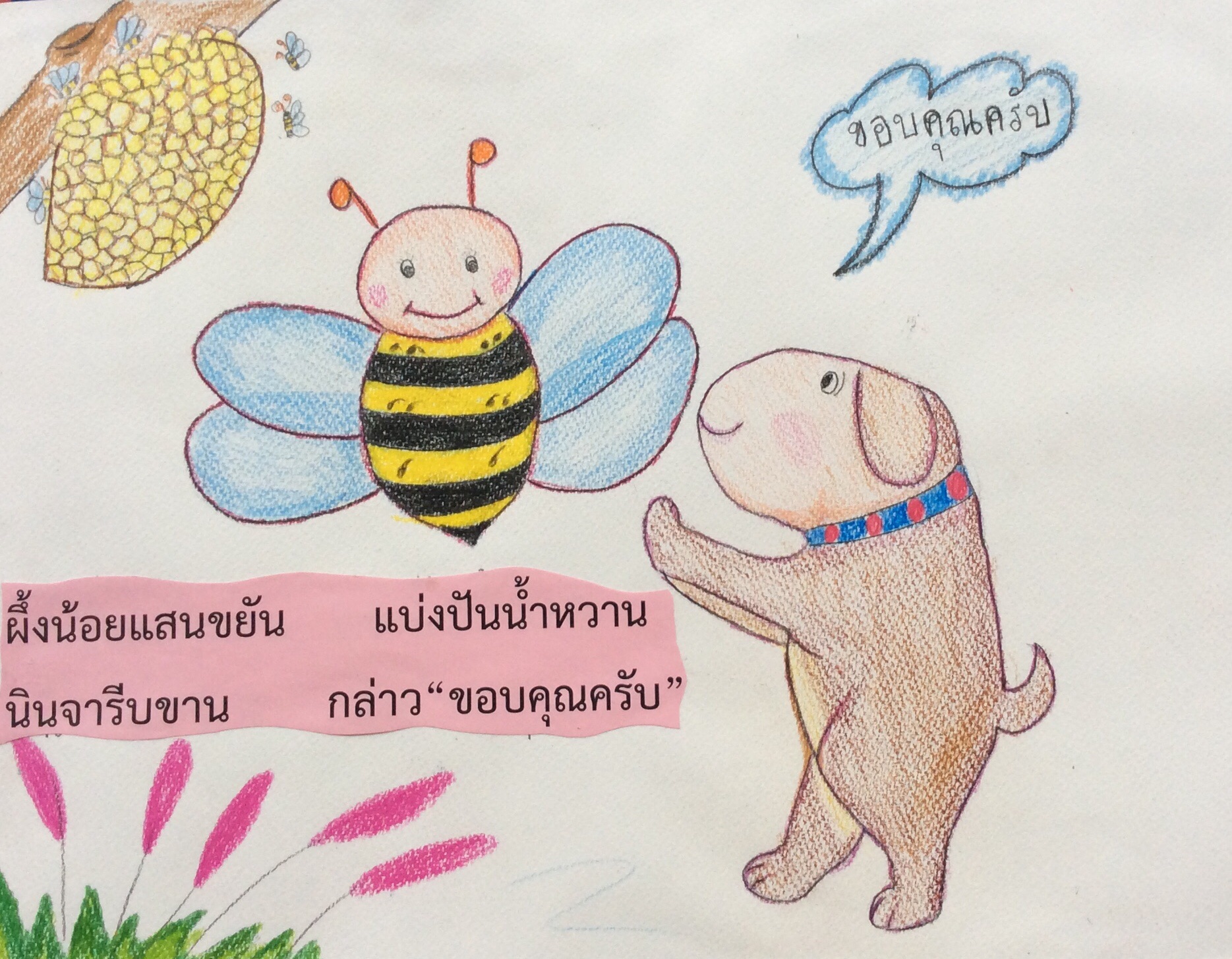 ผึ้งน้อยแสนขยัน แบ่งปันน้ำหวาน นินจากล่าวขาน ไหว้ "ขอบคุณครับ"