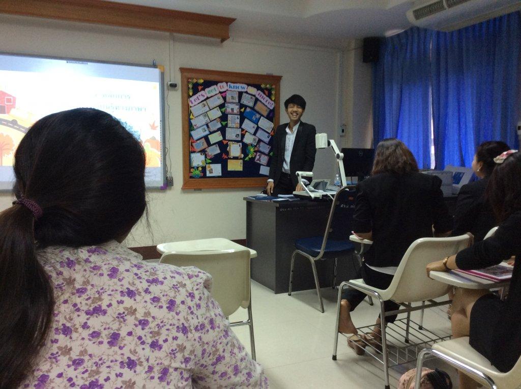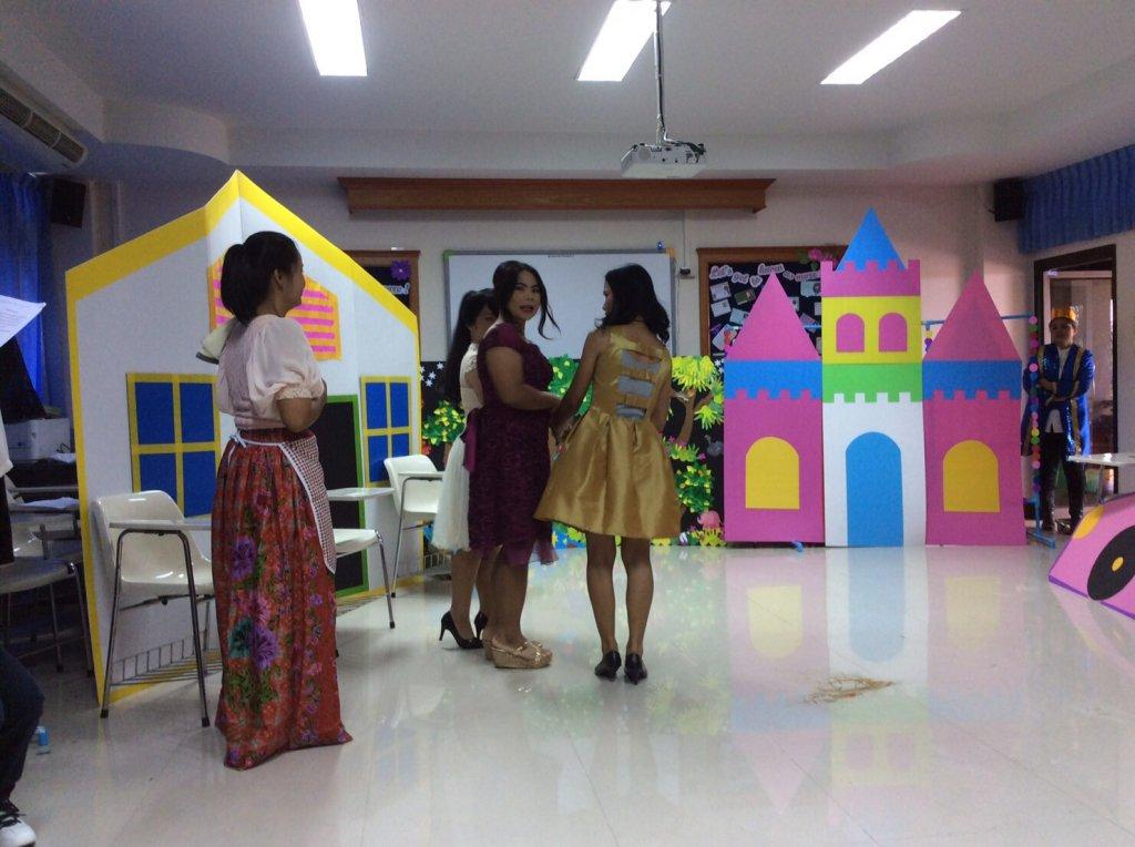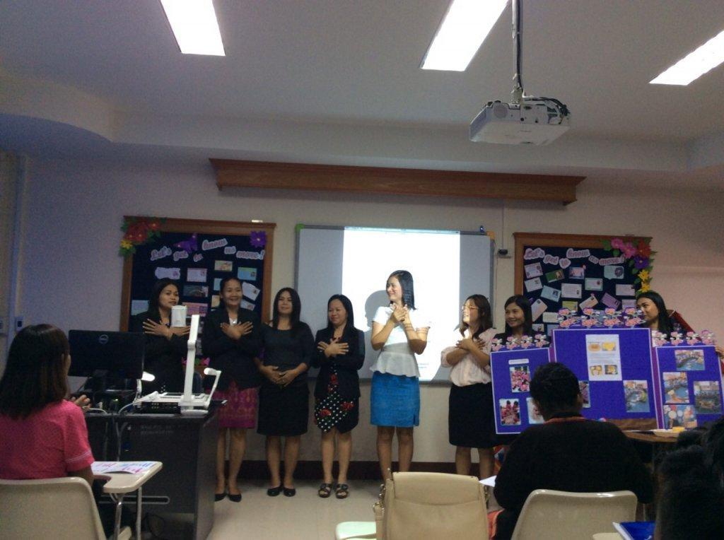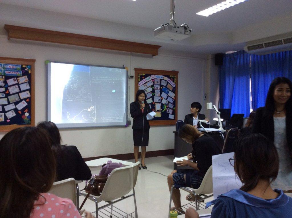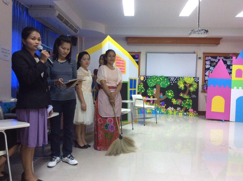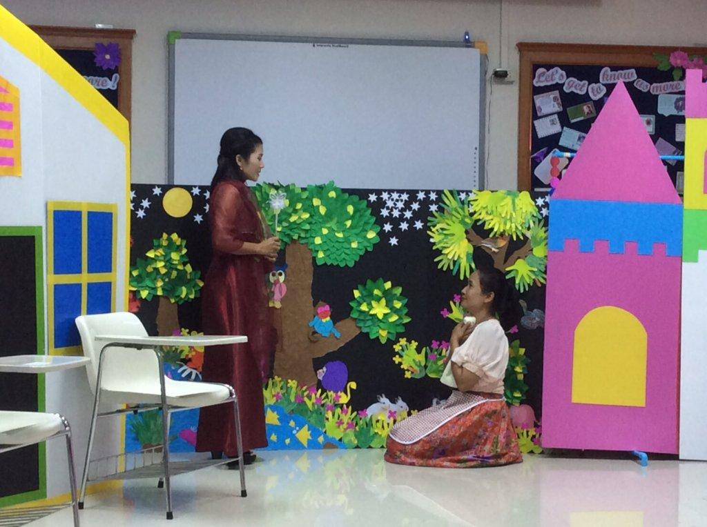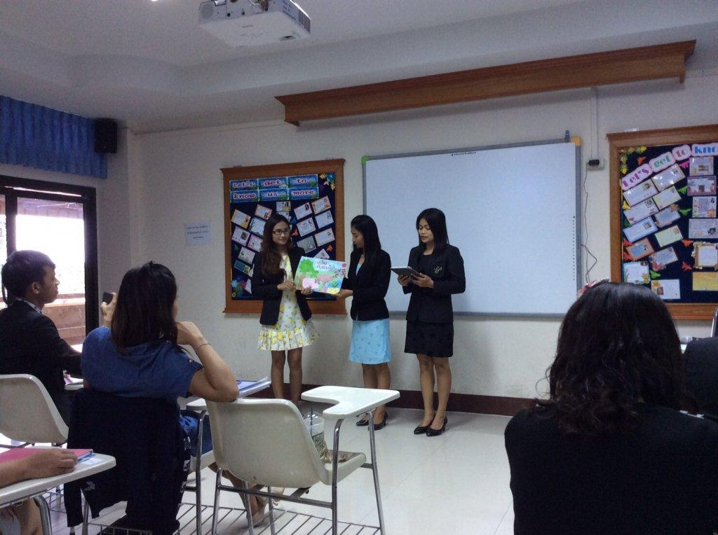 วิชาภาษาและวัฒนธรรม สรุปเนื้อหาที่เรียนทั้งหมด แสดงละครที่แต่ละกลุ่มจับฉลากได้ ซึ่งได้ละครเรื่องซินเดอเรลล่า และการออกไปนำเสนอวัฒนธรรมเกี่ยวกับอาหารการกินของภาคตะวันออกเฉียงเหนือ นวัตกรรม คือ ข้าวจี่ ซึ่งสื่อที่ใช้ในการนำเสนอในครั้งนี้เป็นสื่อของจริงที่นำไปใช้จัดการเรียนการสอนให้กับเด็ก