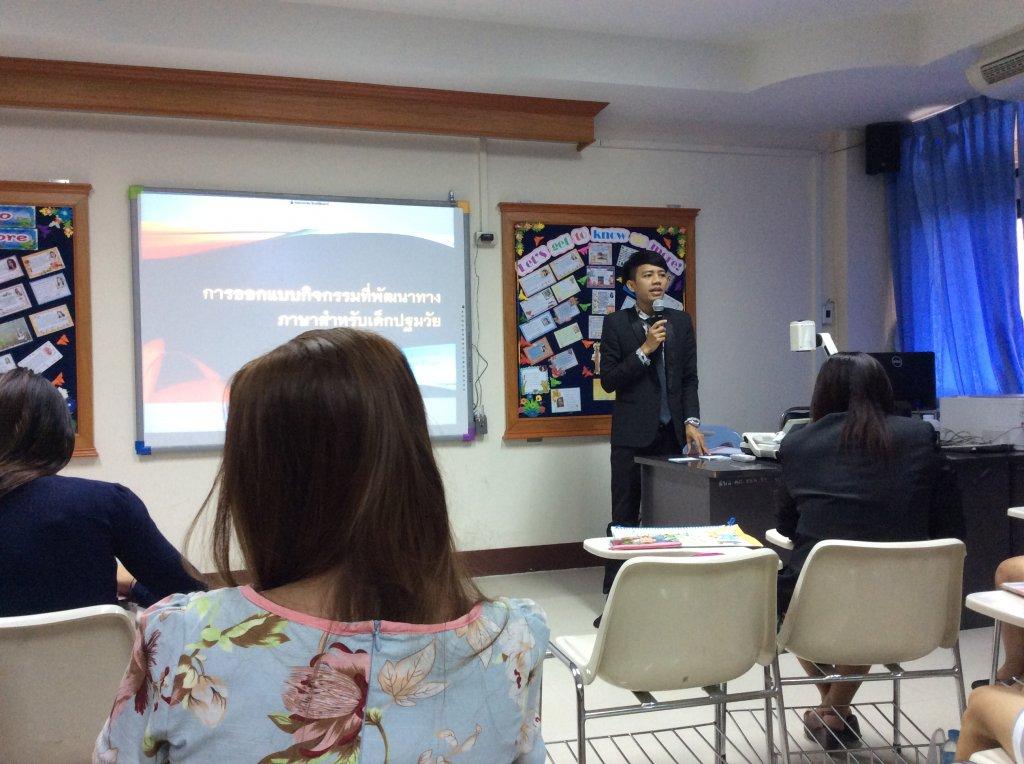 วิชาภาษาและการจัดประสบการณ์การเรียนรู้ เรียนรู้เกี่ยวกับการจัดกิจกรรมการเรียนรู้โดยใช้คำคล้องจอง ควรให้เด็กฟังเสียงไปพร้อมกับการเห็นภาพ ซึ่งสมองของเด็กจะจดจำข้อมูลทันทีและเมื่อฟังซ้ำ เห็นภาพซ้ำ สมองของเด็กจะถอดแบบแผนของเสียงที่สัมพันธ์กับแบบแผนการสะกดออกมาได้สำเร็จ และเมื่อเด็กเห็นคำที่มีแบบแผนที่แตกต่างกัน เด็กจะรู้เพียงว่าเสียงที่แตกต่างกันนั้น ย่อมใช้อักษรต่างกันด้วย