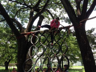 ฐานที่4กิจกรรมทดสอบกำลังใจกิจกรรมที่สนุกและทดสอบความแข็งแรงของร่างกายของนักศึกษา