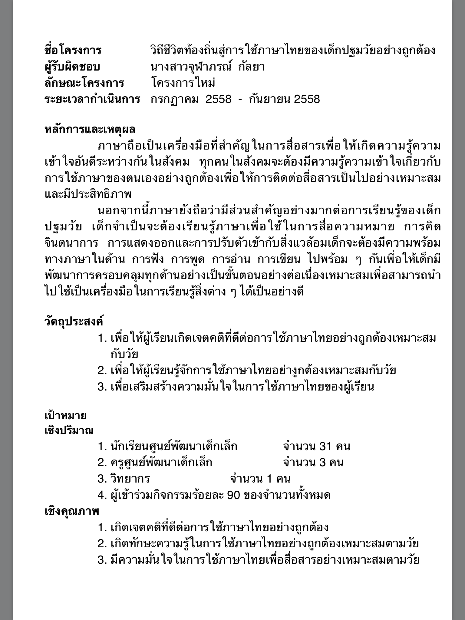 โครงการวิถีชีวิตท้องถิ่นสู่การใช้ภาษาไทยของเด็กปฐมวัยอย่างถูกต้อง