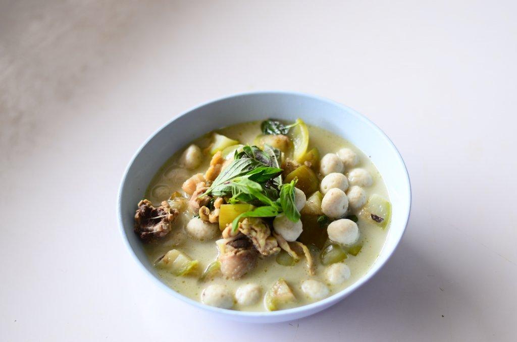 แกงเขียวหวานไก่ใส่ลูกชิ้นปลา