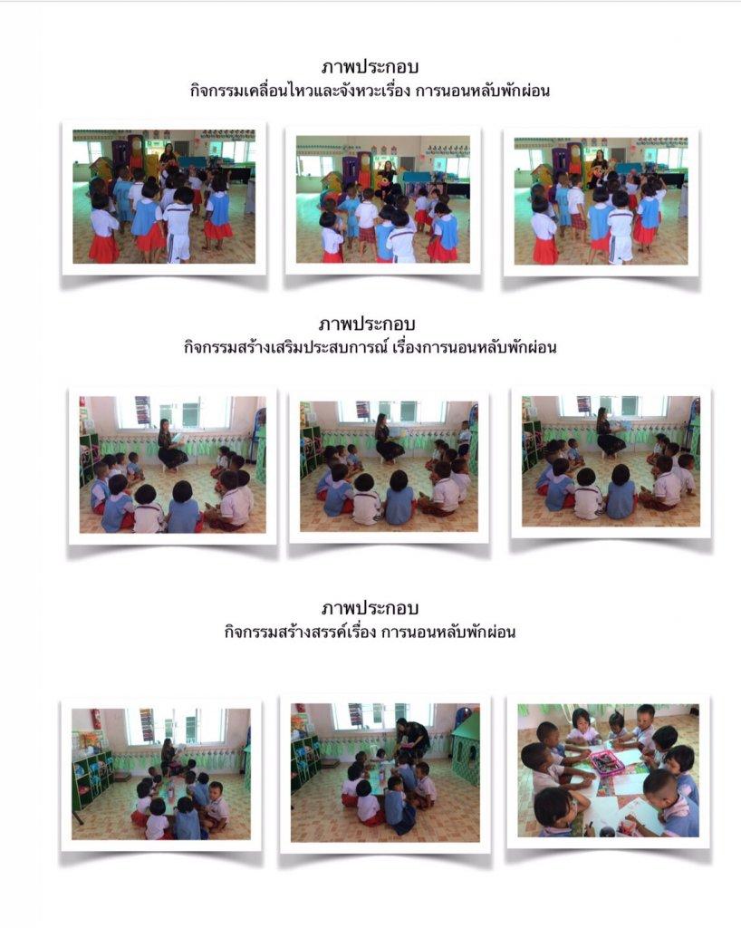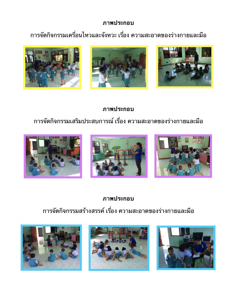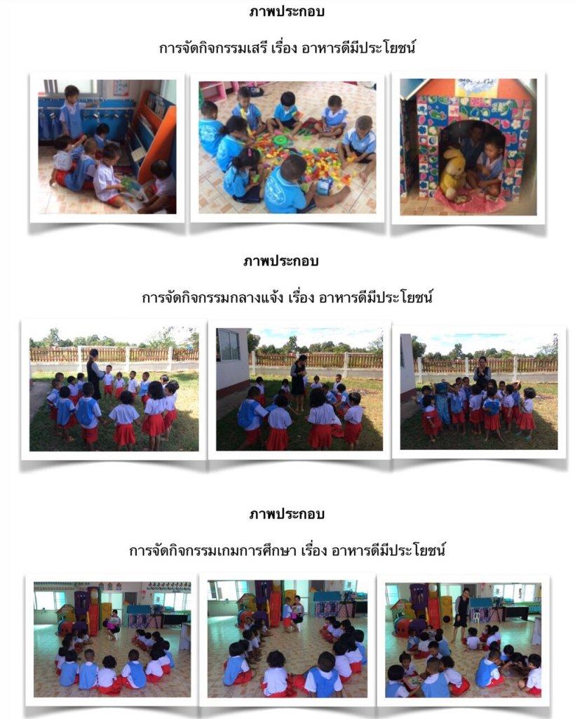 เป็นการจัดกิจกรรมการเรียนรู้เรื่องโภชนาการ สุขอนามัยและความปลอดภัย มีทั้งหมด 5 เรื่อง คือ 1.อาหารดีมีประโยชน์ 2.ความสะอาดของร่างกายและมือ 3.การขับถ่าย 4.ความปลอดภัย 5.การนอนหลับพักผ่อน มีการจัดทำแผนการจัดประสบการณ์การเรียนรู้ทั้ง 5 เรื่อง ไปจัดการเรียนการสอนในศูนย์พัฒนาเด็กเล็ก เพื่อให้เด็กเกิดการเรียนรู้และเข้าใจถึงโภชนาการ การรักษาสุขภาพ และความปลอดภัย ในการเรียนและการใช้ชีวิตประจำวันให้มีความระมัดระวังและรู้จักรักษาความสะอาดของร่างกายกันเอง เพื่อให้เด็กห่างไกลจากโรคต่างๆ